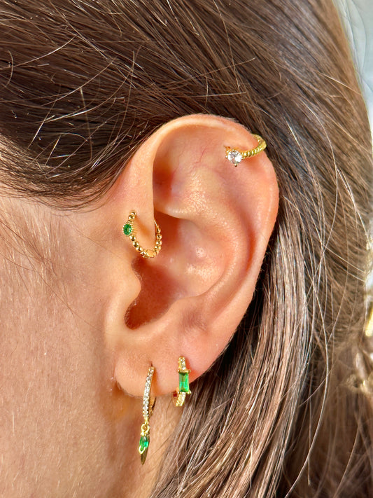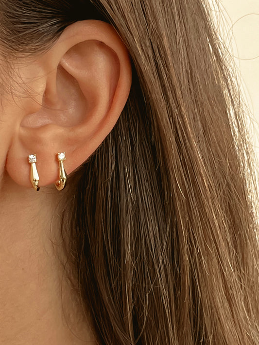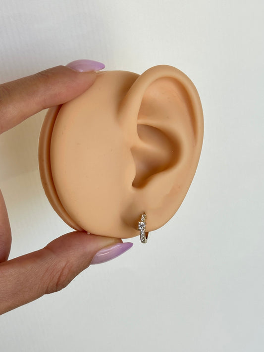 One White Stone Hoops